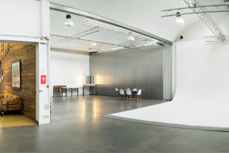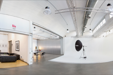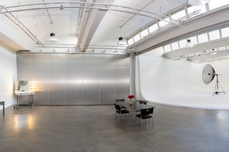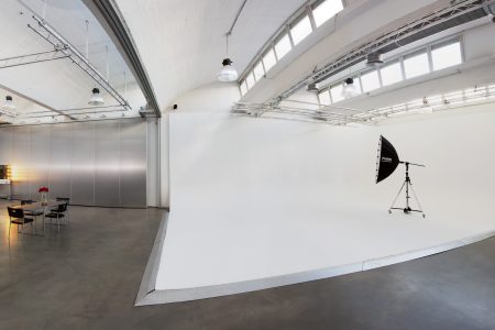 Ciclorama 9,80 (suelo) metros largo x 7,5 metros ancho x 4 metros alto.